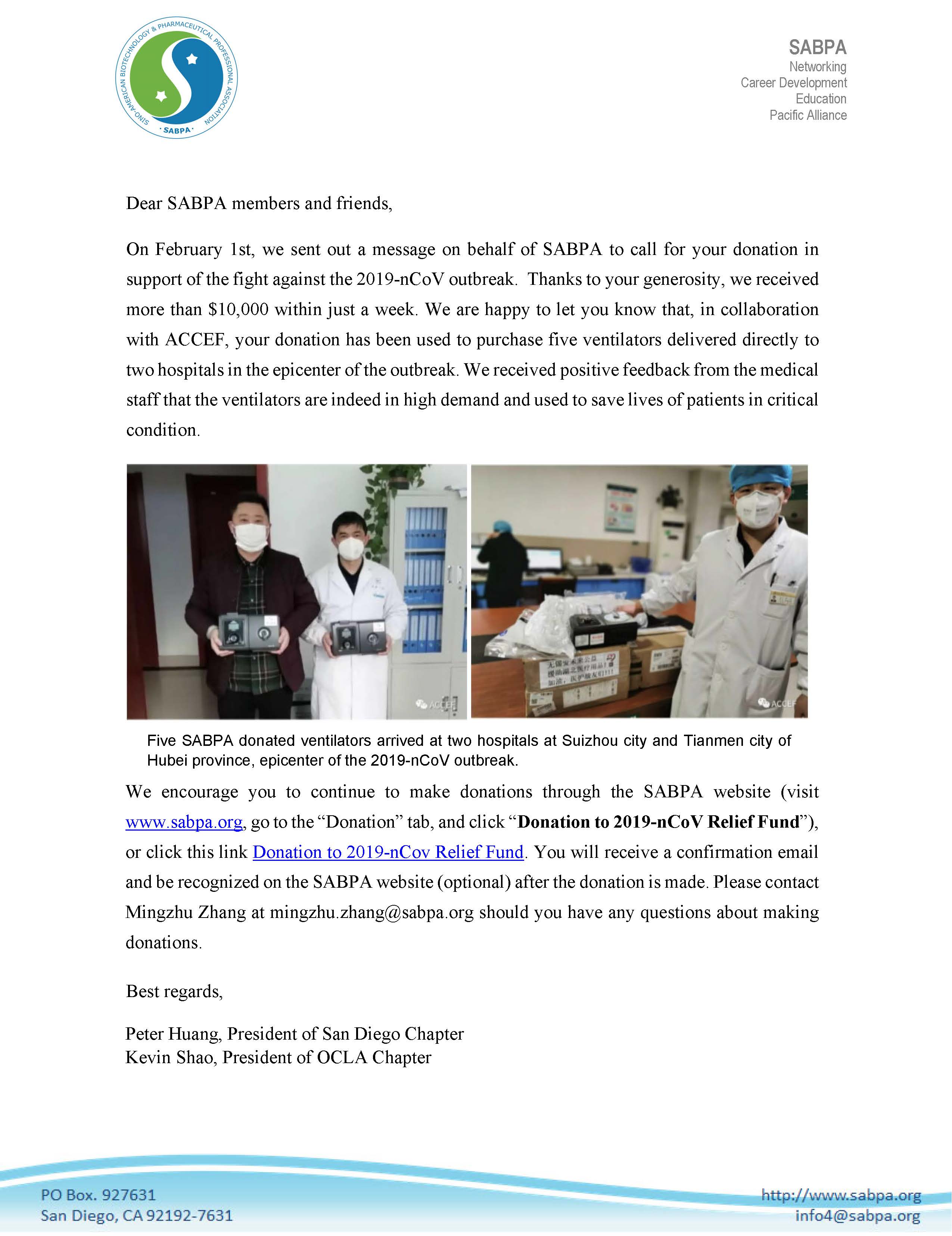 SABPA Report_Donation for 2019-nCoV Outbreak Relief Fund